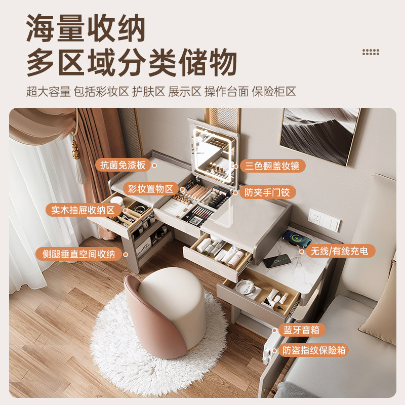 虎牌2025新款梳妆台保险柜一体家用防盗床头柜书桌保险箱1米加指纹密码小型家庭智能带轻奢卧室小户型化妆桌