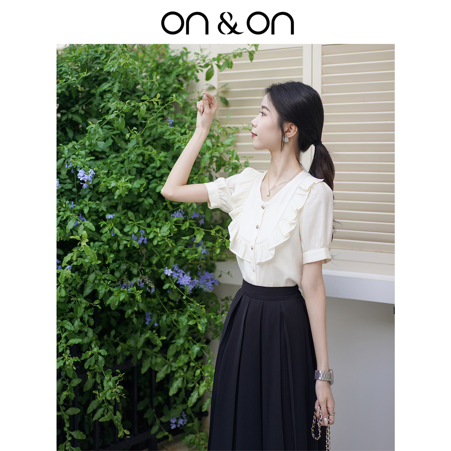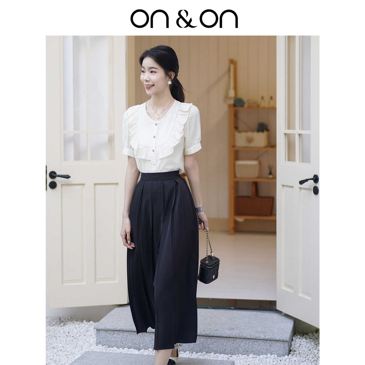 ON&ON/安乃安2025秋季新款经典百褶黑色中长A字伞高腰时尚半身裙
