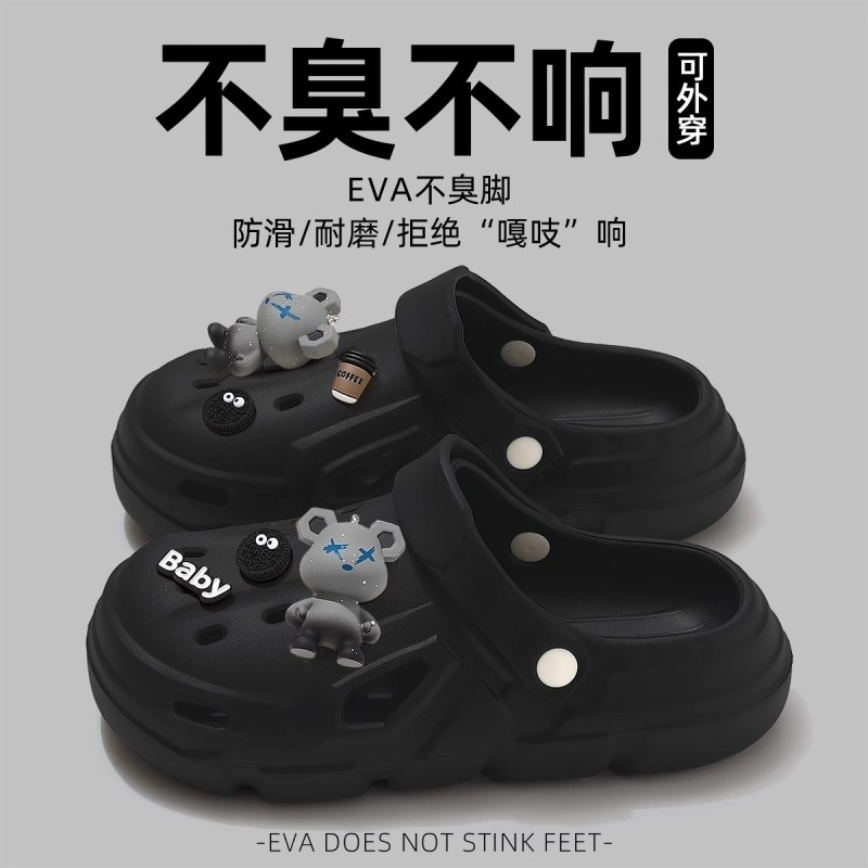洞洞鞋男士防滑夏季2025新款踩屎感增高沙滩鞋包头户外凉鞋女外穿