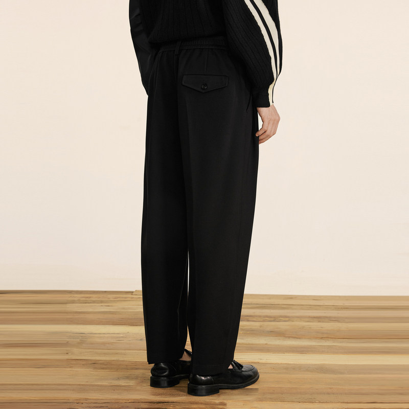 速写男装秋冬新款休闲针织裤宽松弯刀裤高弹休闲潮男士长裤时尚