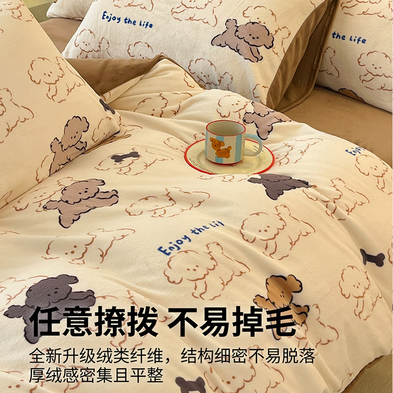 洁丽雅牛奶绒四件套冬季珊瑚绒被套床单加绒毛绒法兰绒床上三件套