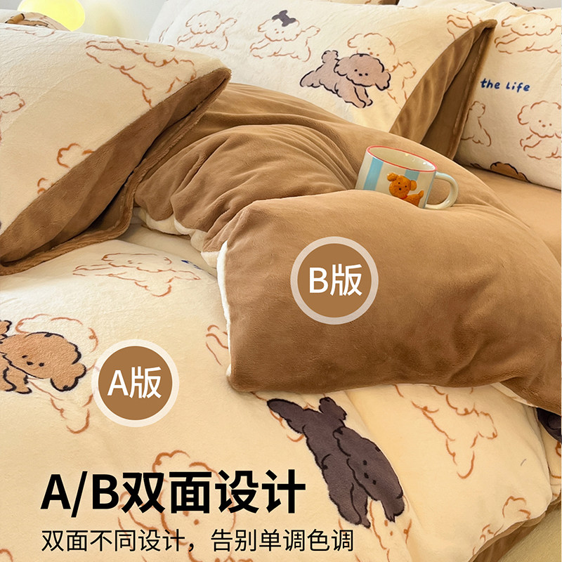 秋冬季加厚四件套牛奶绒被套床单双面加绒被罩床笠学生宿舍三件套