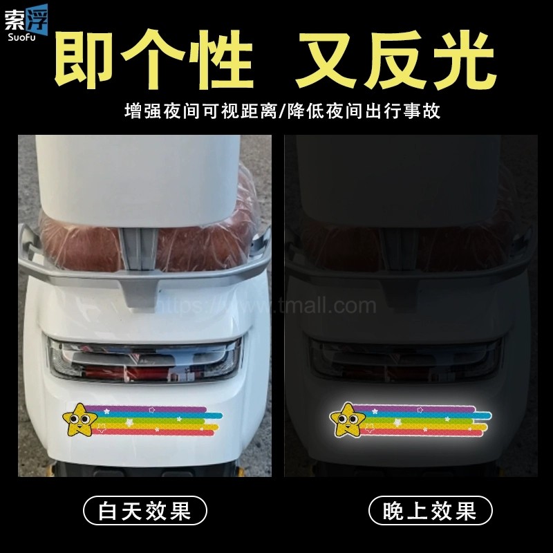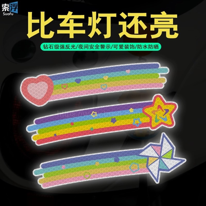 小花流星电动车贴纸卡通汽车反光贴遮盖划痕装饰头盔夜间防撞警示