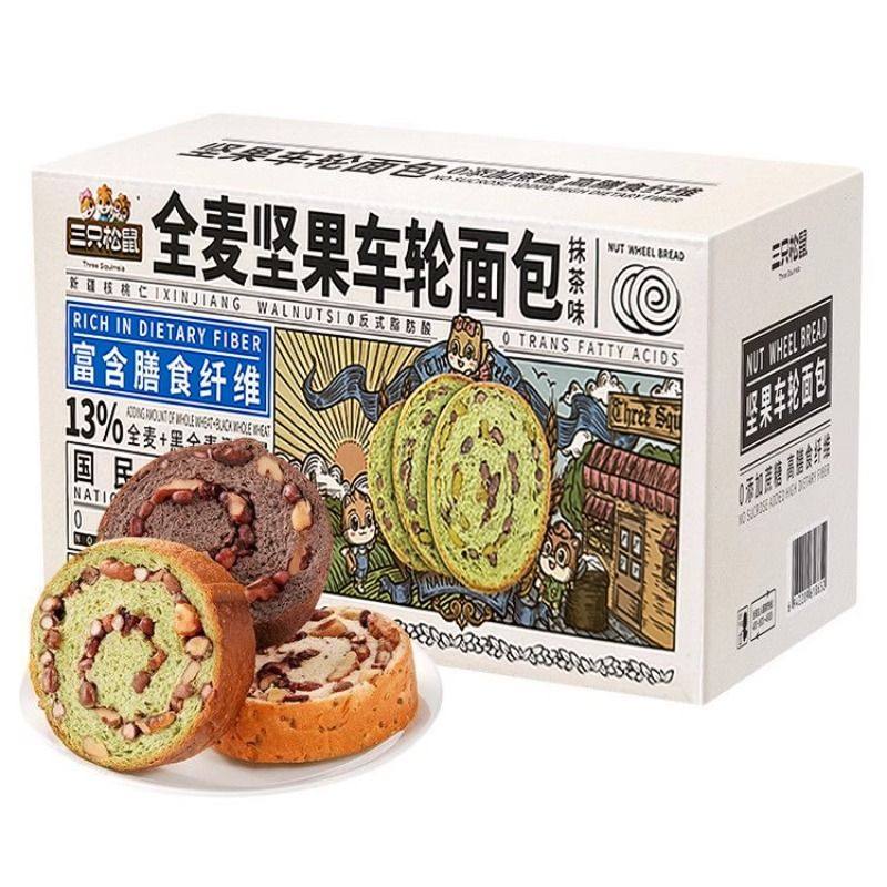 三只松鼠全麦坚果车轮面包抹茶味/五黑味500g*1箱