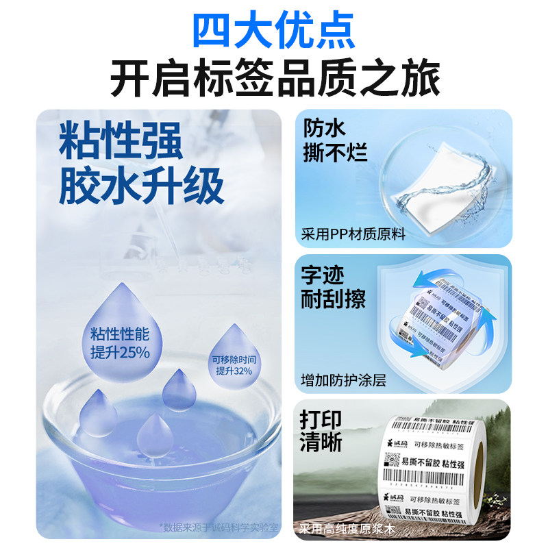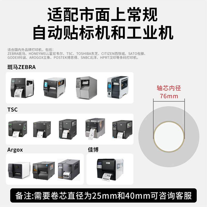 76管芯自动贴标机工业打印机易撕不留胶可移除热敏标签纸五防合成纸60*40 80 100全屋定制防水不干胶无痕贴纸