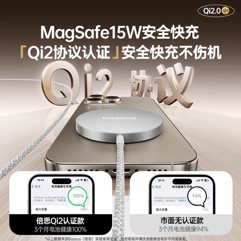 倍思Qi2认证magsafe磁吸无线充电器适用苹果17promax快充15W手机iPhone14plus/13背吸桌面16pro无线充电底座
