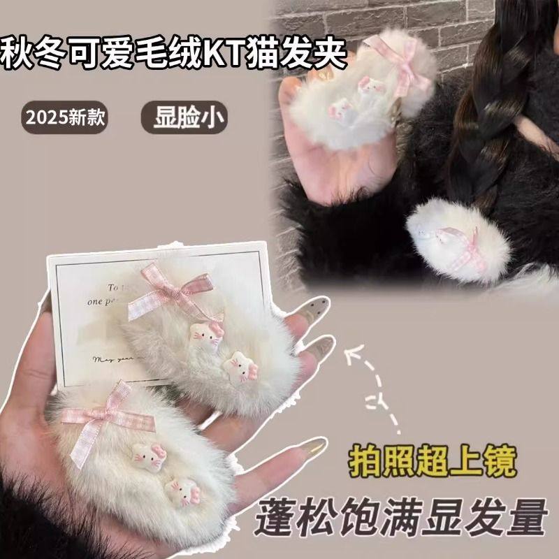 秋冬ins毛绒发夹毛茸茸星星BB可爱发卡少女发饰刘海蝴蝶结新款