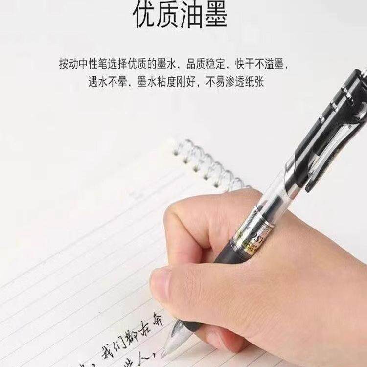 晨光中性笔按动式黑色水笔红色蓝色速干顺滑大容量学生用碳素笔