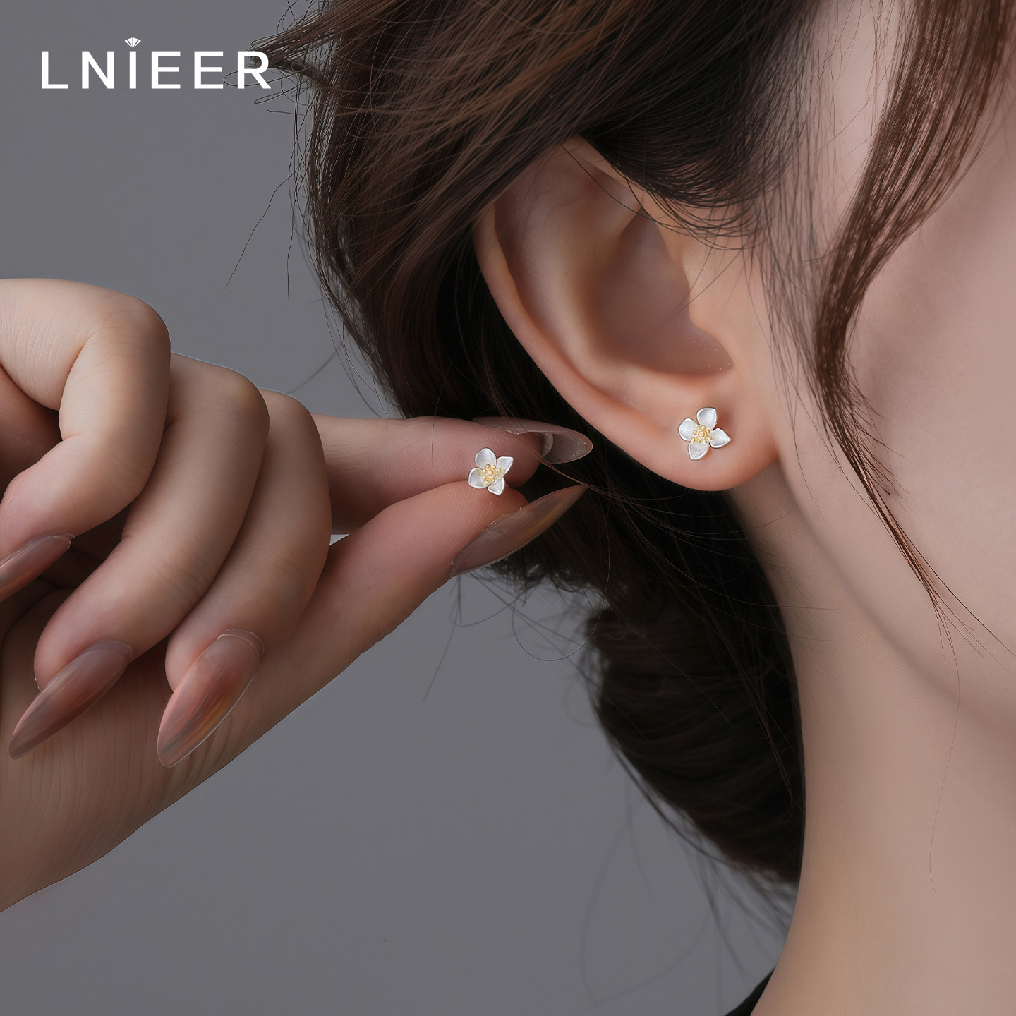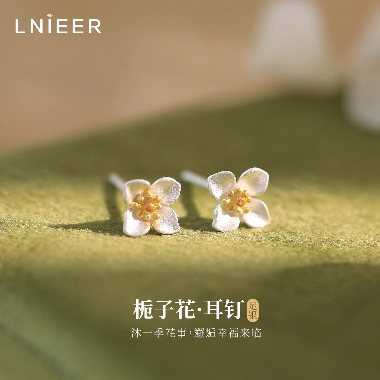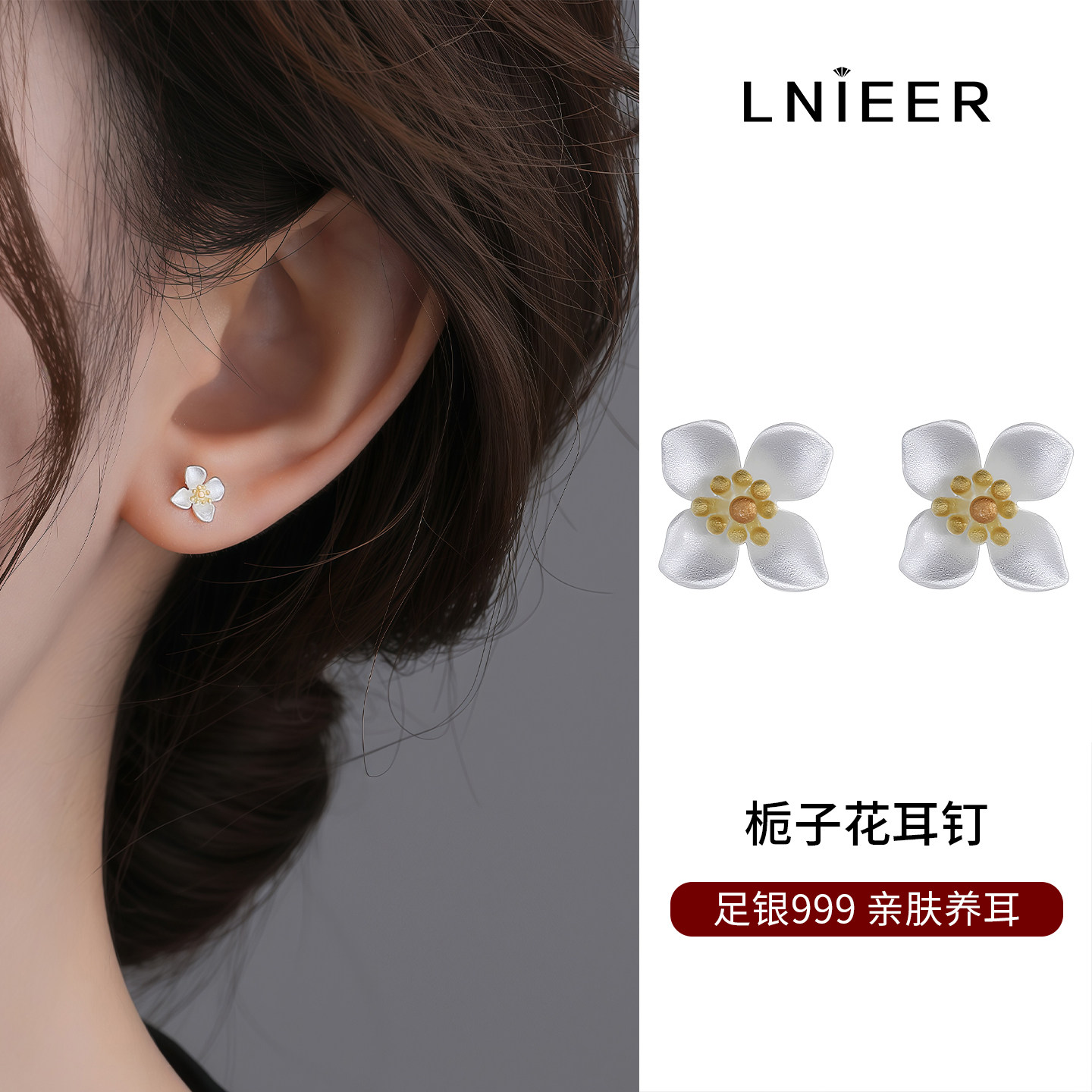 S999纯银栀子花耳钉女养耳洞防致敏耳环睡觉免摘2025新款爆款耳饰