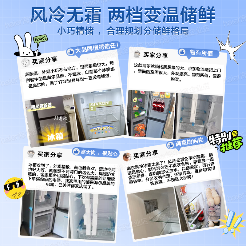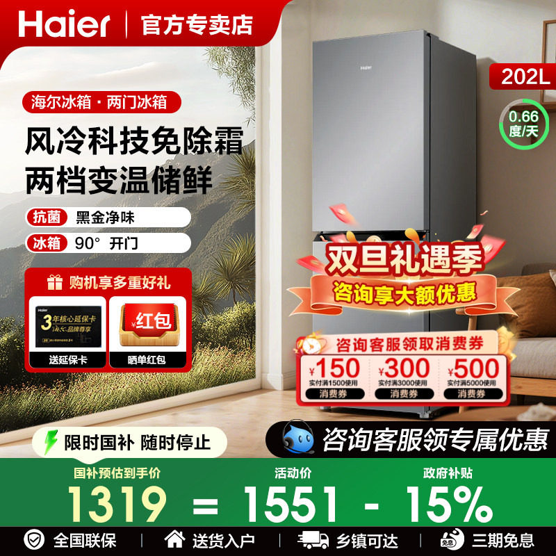 Z[新品]海尔冰箱202L升租房两门双门小型家用超薄风冷无霜官方