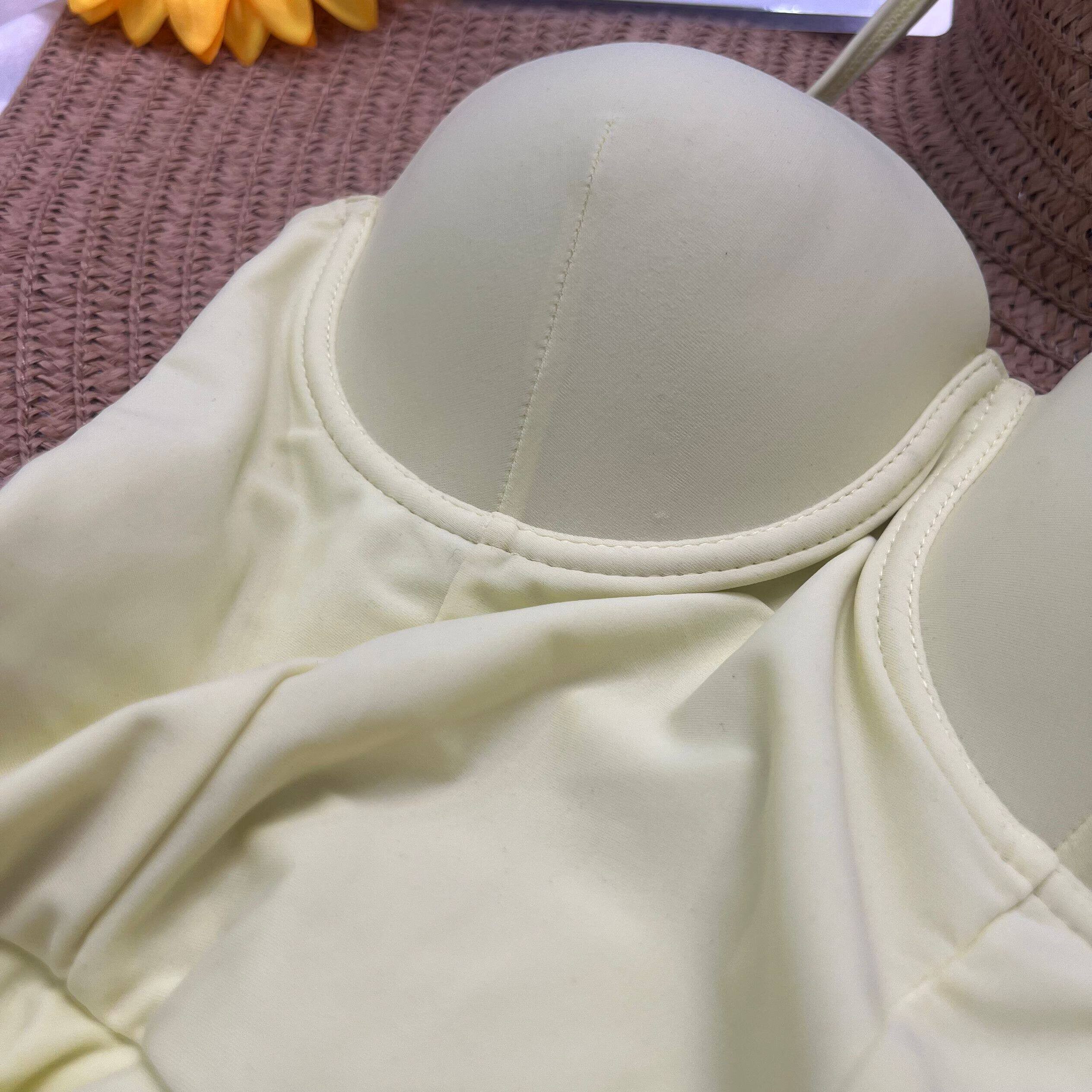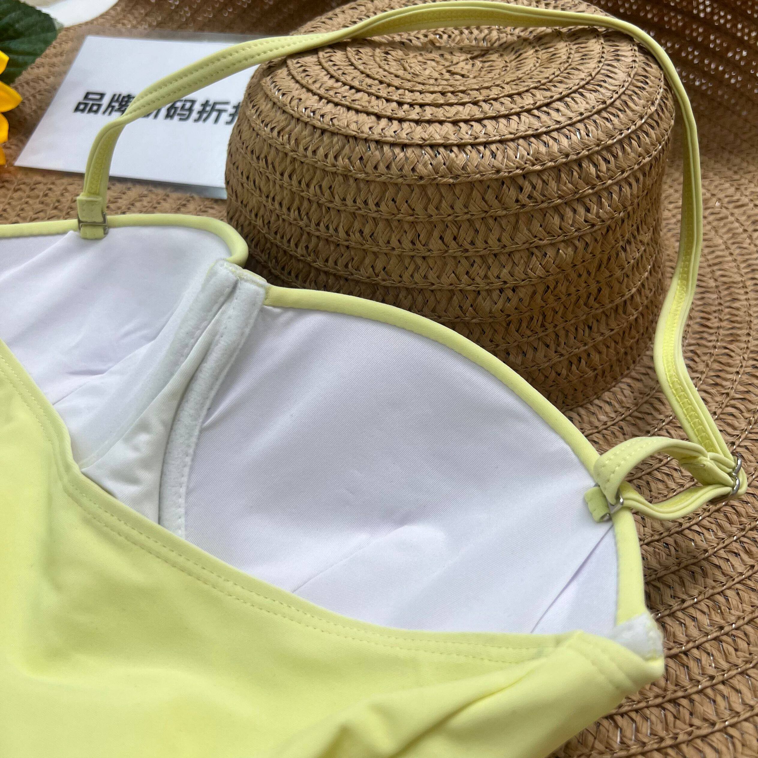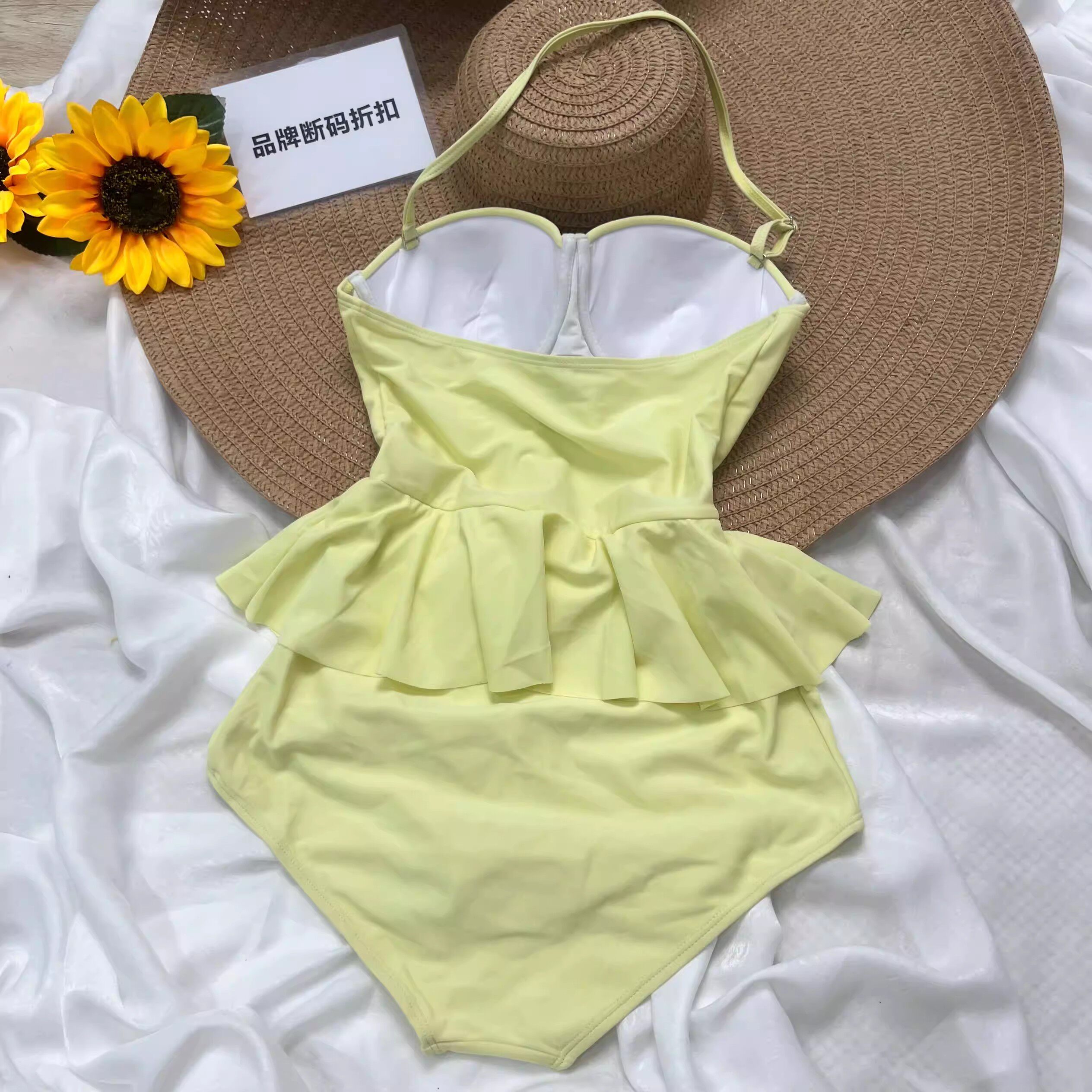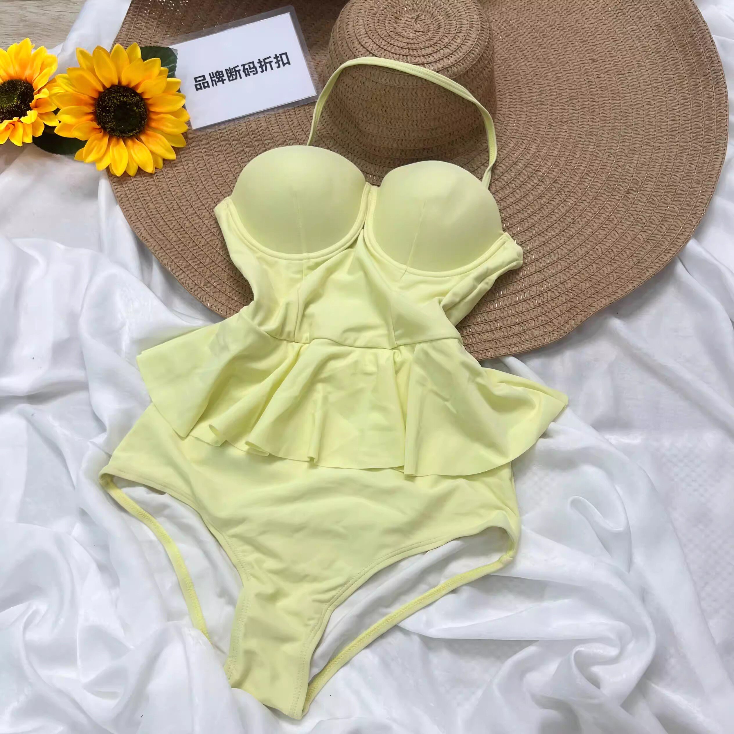 倩牛泳衣】性感吊带连体泳衣女荷叶边显瘦遮肉修身胸垫一体泳装