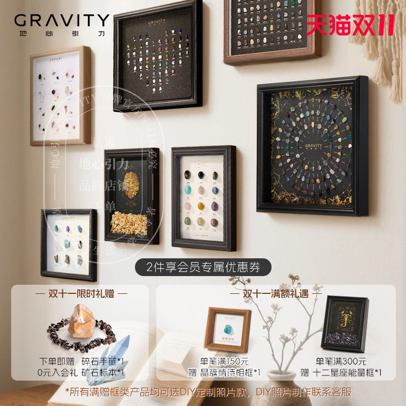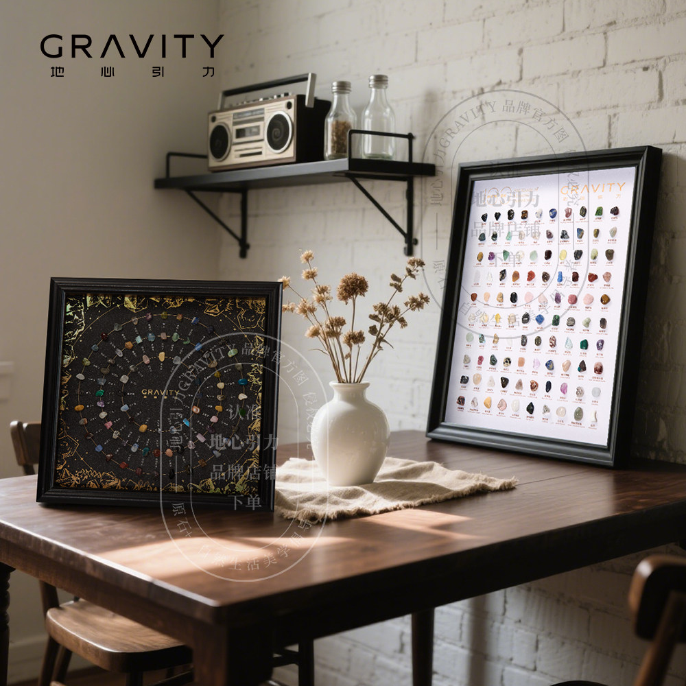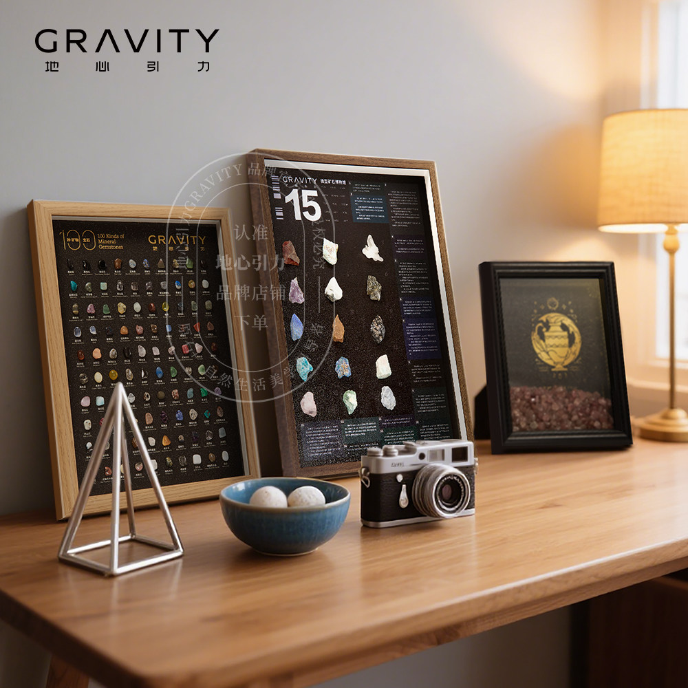 gravity地心引力100种矿物相框矿石标本水晶原石生日礼物桌面摆件