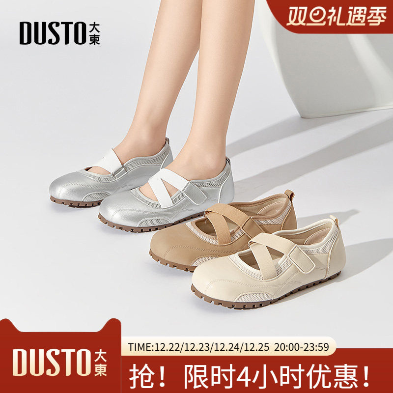大东女鞋女单鞋2025春季新款玛丽珍时尚休闲浅口平底魔术贴0616