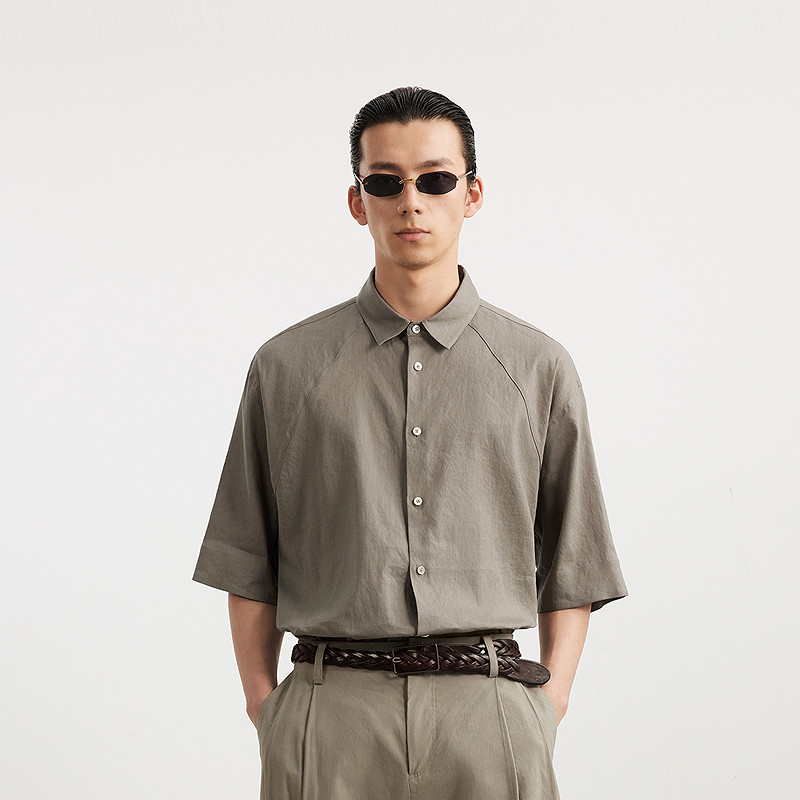 [莱赛尔/含亚麻]速写男装春夏新款男士七分袖短袖衬衫新中式