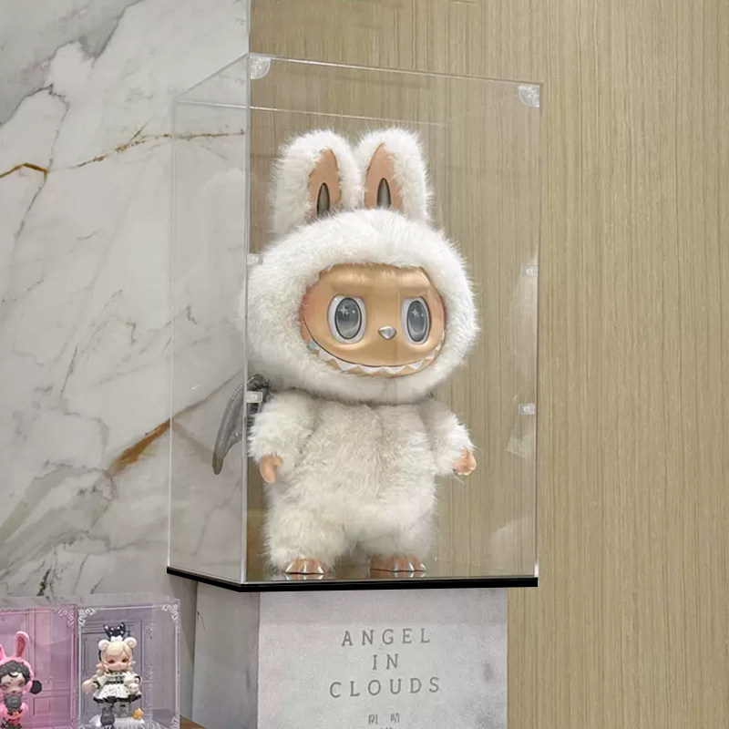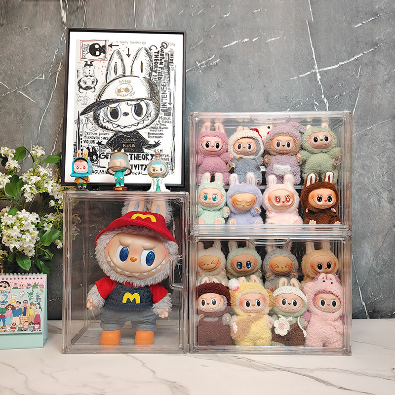 labubu透明手办展示盒马卡龙亚克力坐坐派对娃娃玩偶拉布布收纳盒