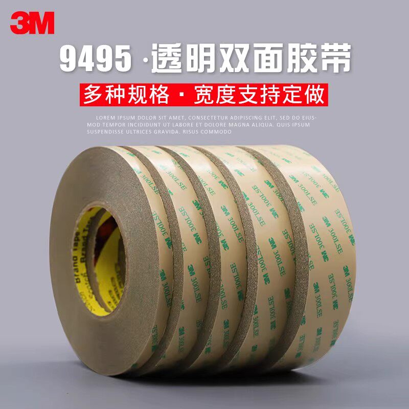 3M300LSE双面胶9495LE双面胶带超薄全透明PET强力无痕耐温双面胶