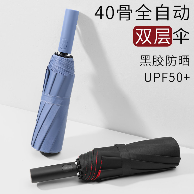 双层全自动雨伞男折叠40骨加固加厚晴雨两用女大号黑胶防晒太阳伞