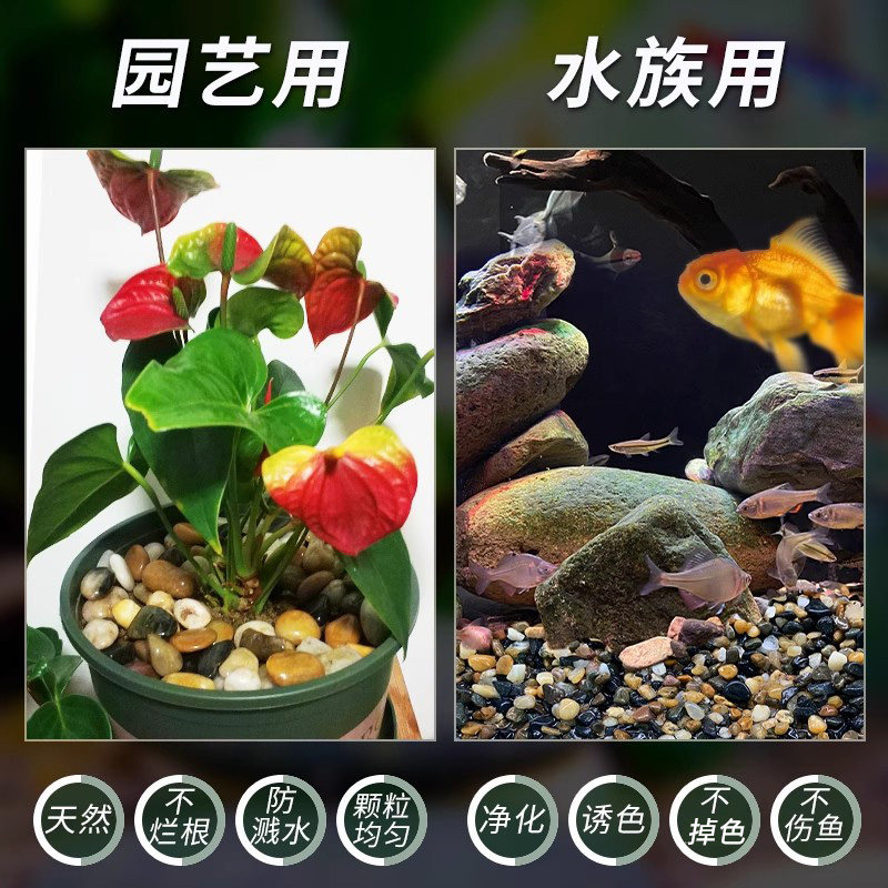 原生溪流石鱼缸底部砂石装饰五彩石造景石铺底石子天然免洗鹅卵石