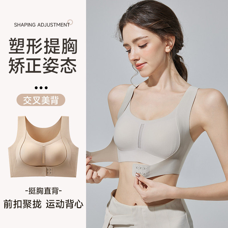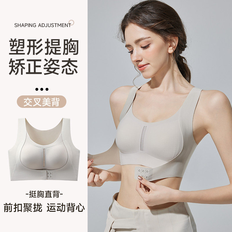矫姿内衣女前扣小胸聚拢防下垂收副乳矫正驼背塑形美背运动文胸罩