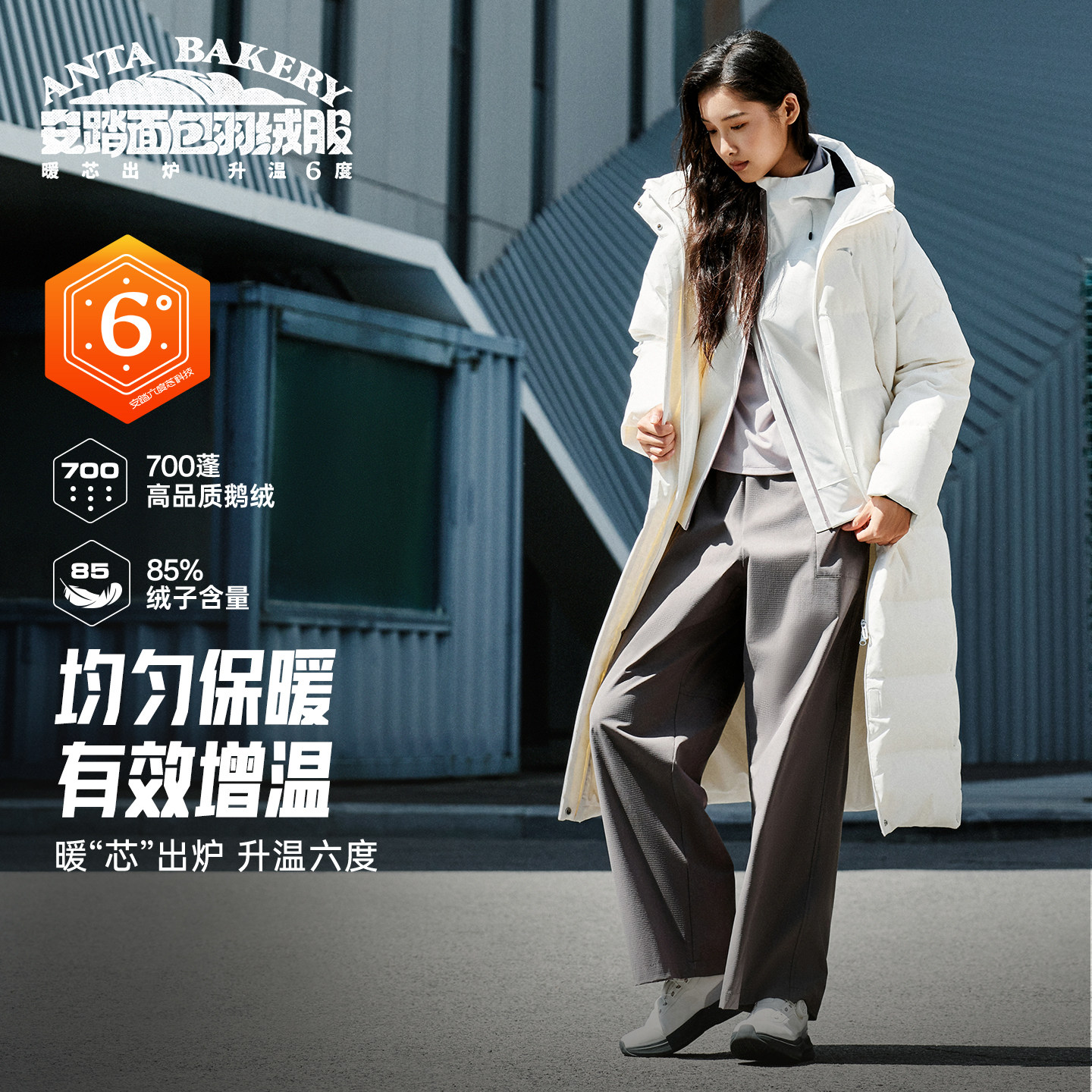 安踏面包羽绒服丨四防大白鹅绒外套女士冬季通勤防风保暖长款棉服