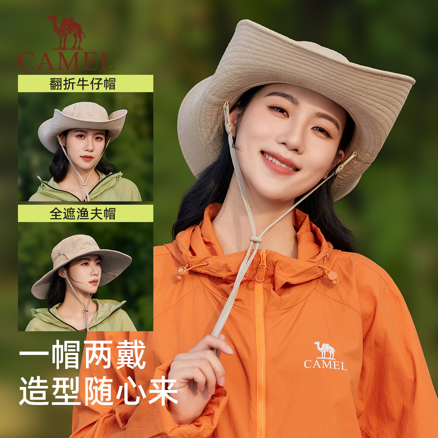 骆驼渔夫帽大帽檐女防紫外线太阳帽牛仔帽男徒步登山遮阳防晒帽子