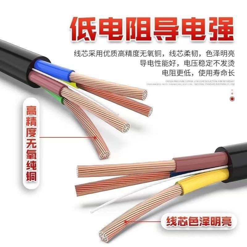工业国标纯铜RVV电线电缆线2芯3芯1.5/2.5/4平方户外家用软护套线