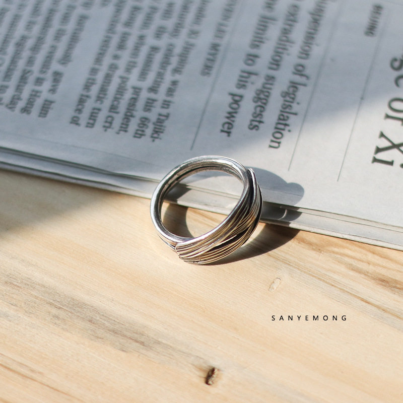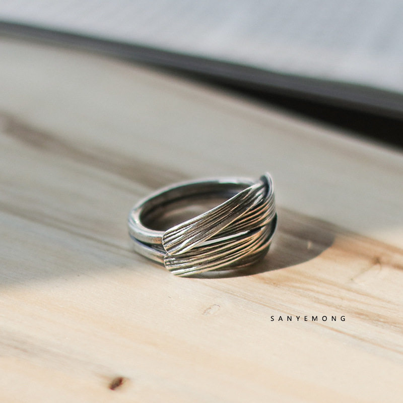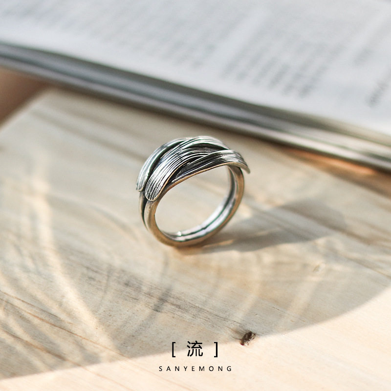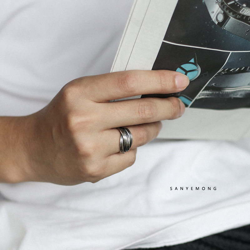 复古设计[流]戒指重叠质感时尚个性男高级食指尾指环泰银戒指男潮