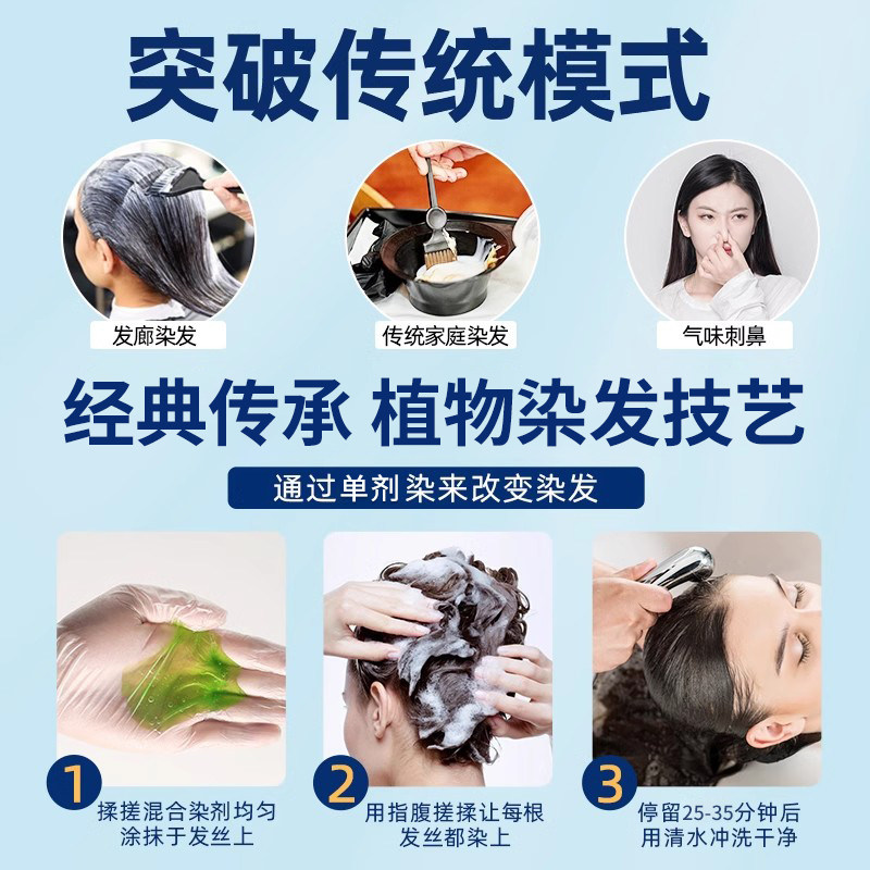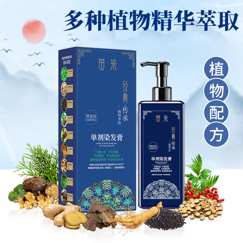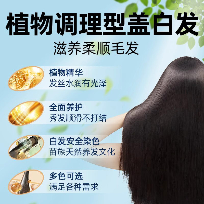 苗染植物萃取单剂染发膏草本自然黑滋养亲肤温和持久盖白染发膏