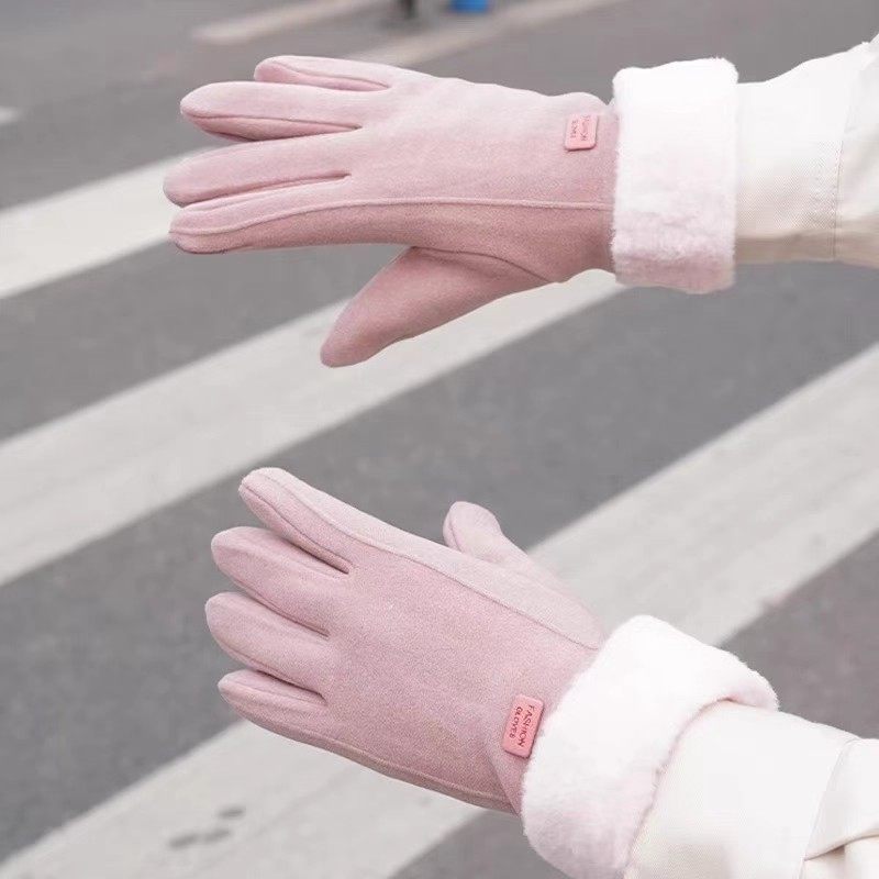 冬季电动车手套加厚加绒保暖麂皮绒骑行防寒触屏男女士防风手套