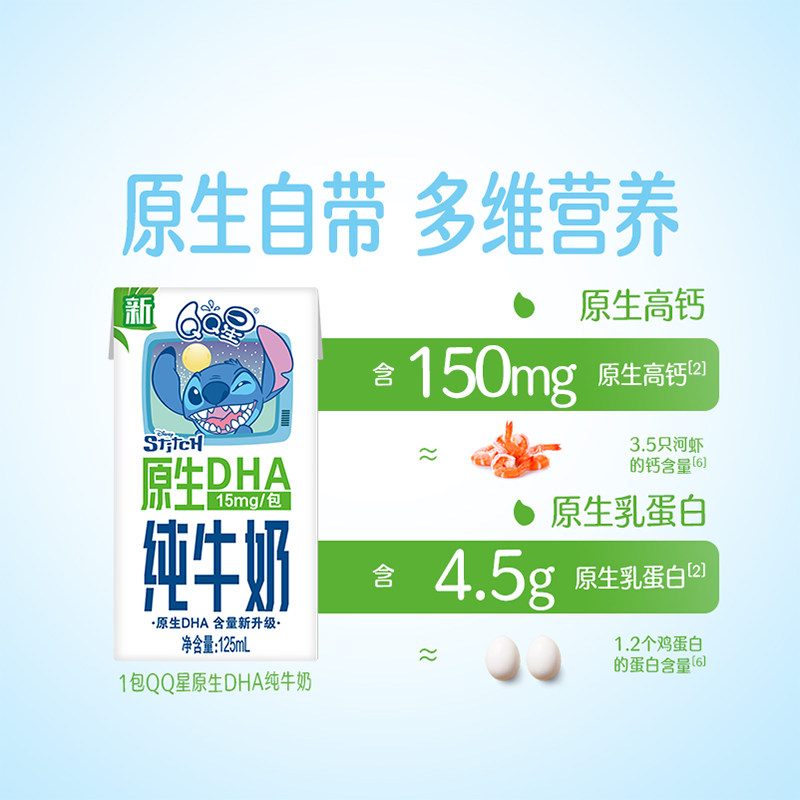 伊利qq星原生DHA儿童营养纯牛奶125ml*16盒整箱正品官方授权11月