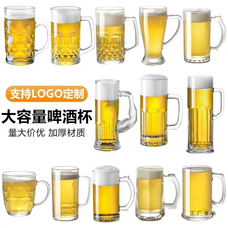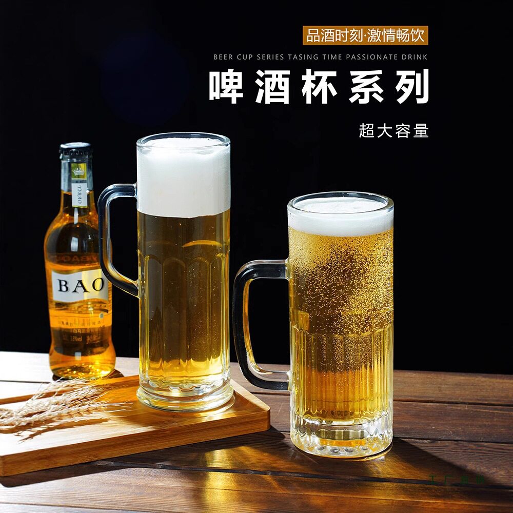 酒吧商用加厚精酿玻璃啤酒杯带把玻璃杯大容量扎啤杯酒杯扎啤杯子