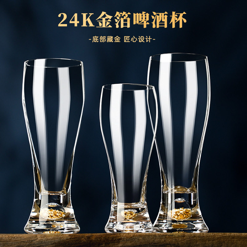 高档轻奢金箔水晶玻璃精酿啤酒杯大容量扎啤杯商用家用套装带架子