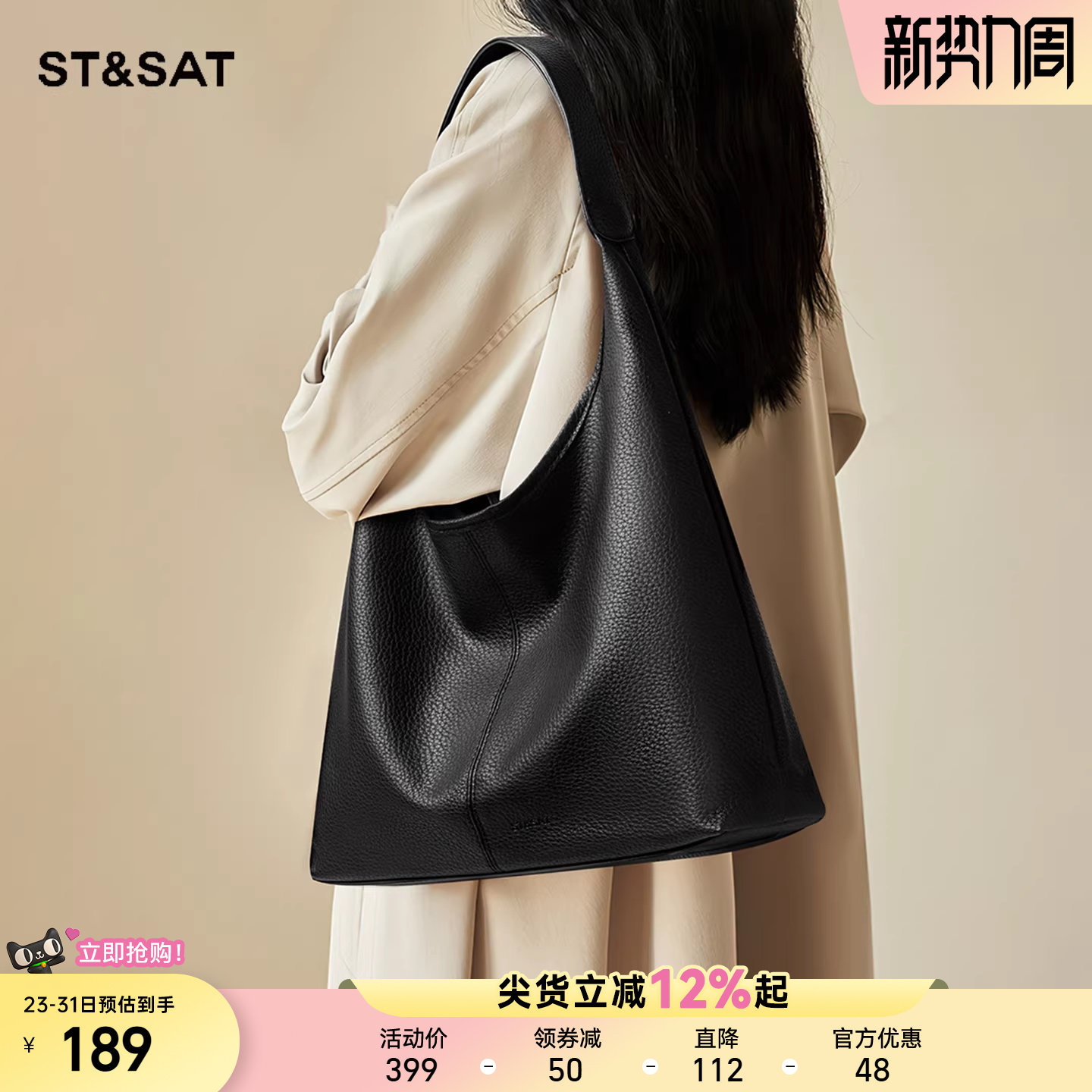 星期六托特包女2025新款单肩包包软皮通勤包大容量腋下手提包hobo