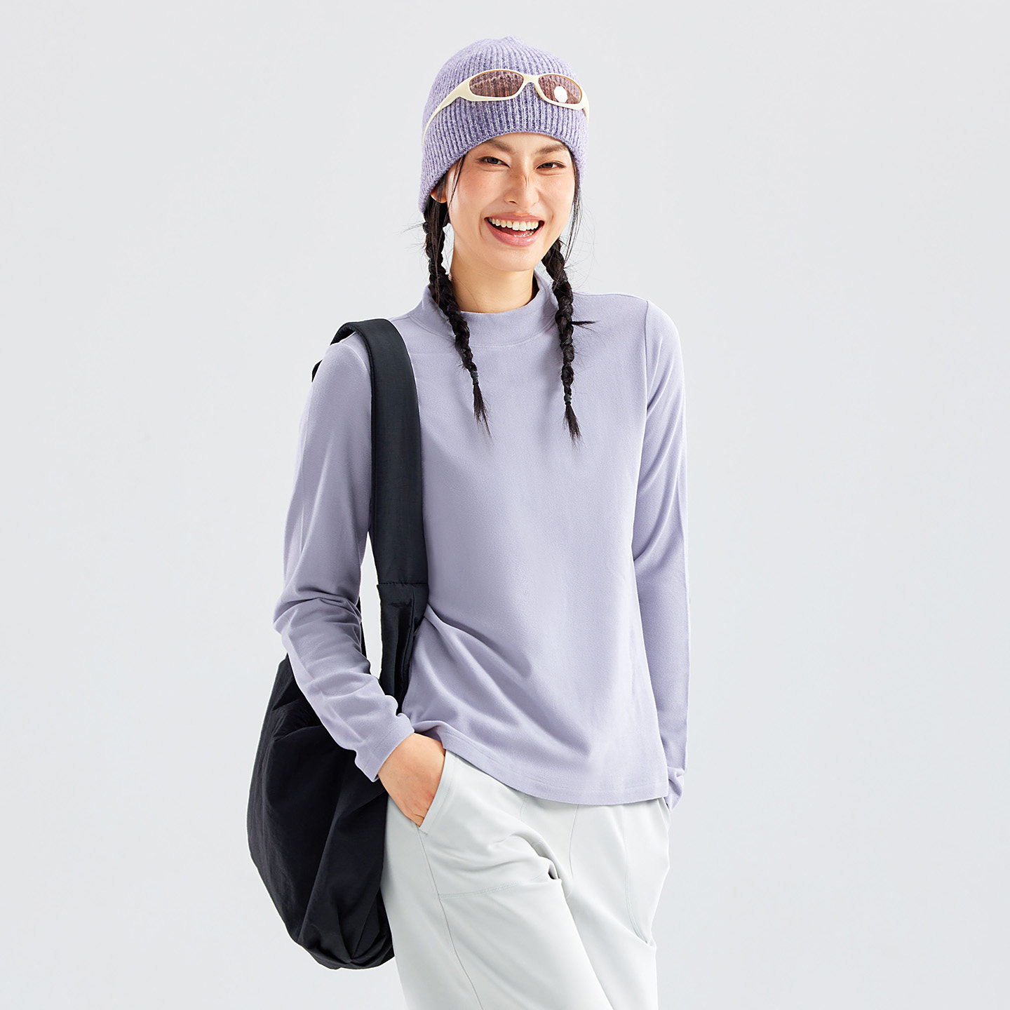 蕉下摇粒绒打底衫女秋季新款半高领保暖加绒亲肤内搭上衣肌底衣
