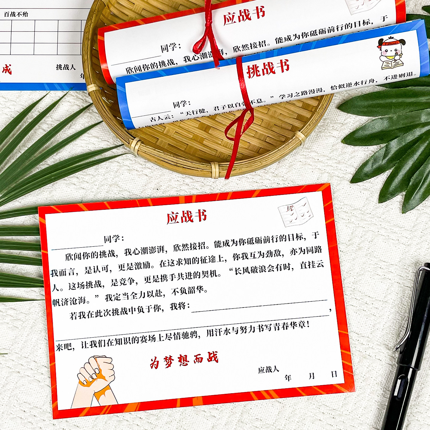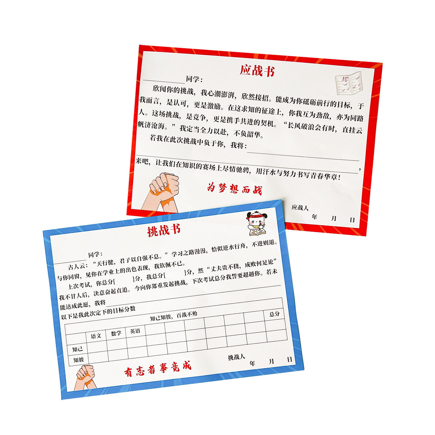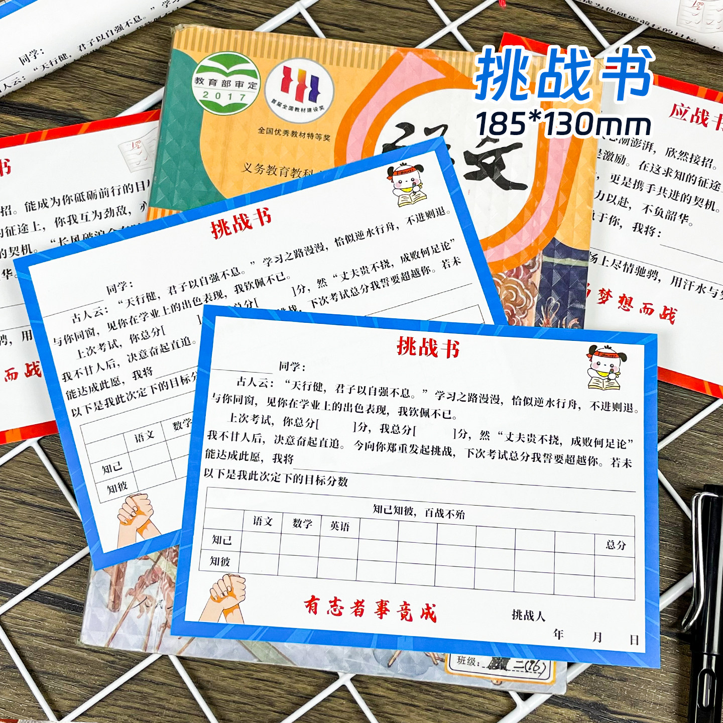 新高三初中生新学期班级应战书学生挑战书激励学习同学pk考试分数成绩计划表班主任管理神器共同进步目标卡