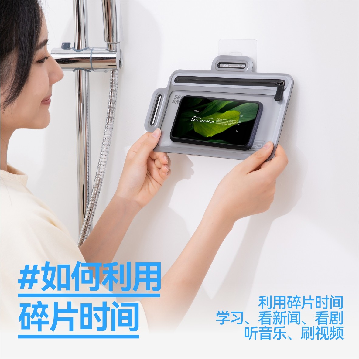浴室防水手机盒看手机神器洗澡防水袋免打孔挂墙淋浴房手机架防水