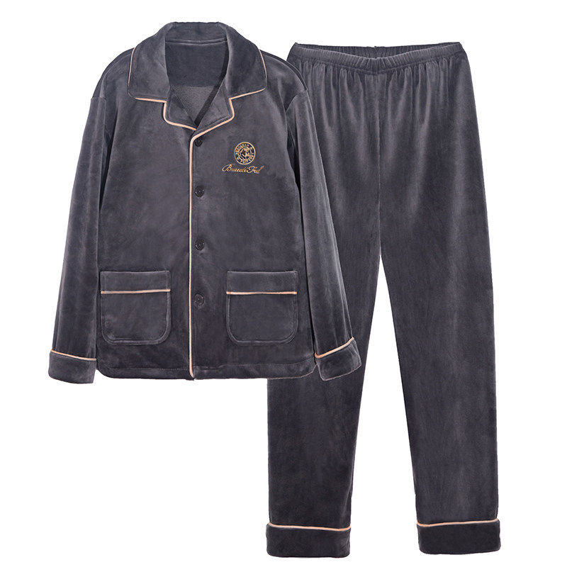 冬季珊瑚绒男士睡衣三层夹棉加厚加绒法兰绒秋冬款家居服保暖套装