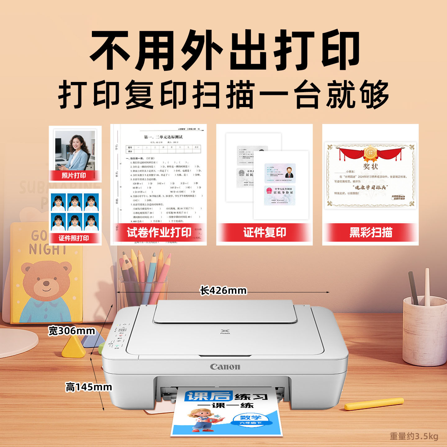 佳能MG2400家用打印机小型复印一体机无线家庭学生作业彩色喷墨可连接手机a4办公专用扫描蓝牙照片3480迷你