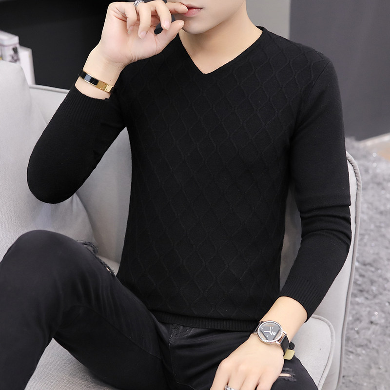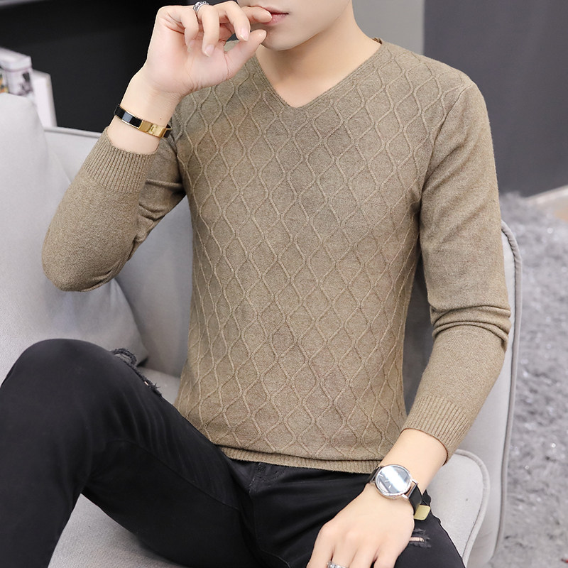 2025秋季新款韩版纯色修身毛衣男潮牌V领休闲打底衫百搭秋冬上衣