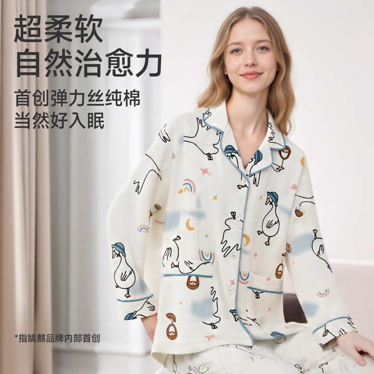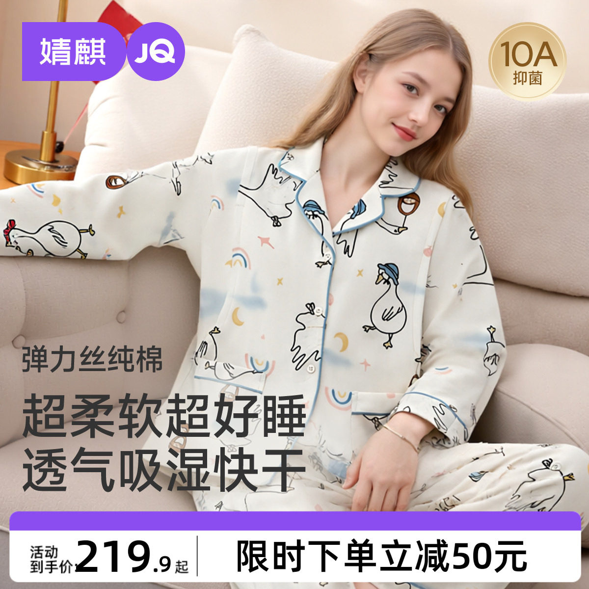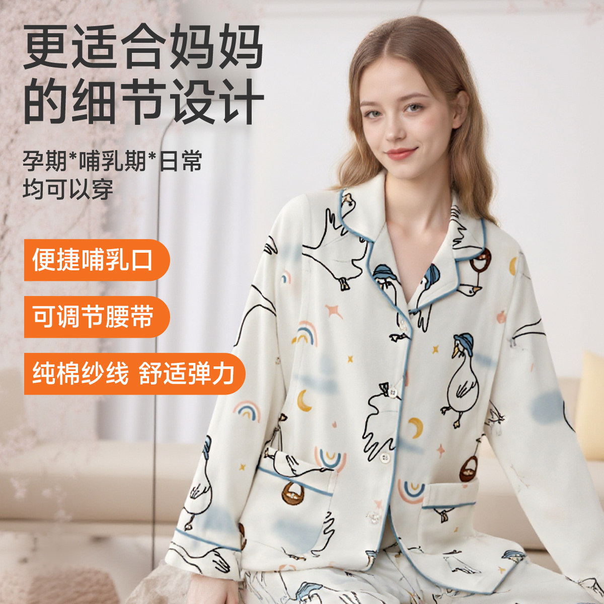 十月结晶兜兜鸭纯全棉吸汗月子服哺乳睡衣7A抗菌12月家居服女冬季