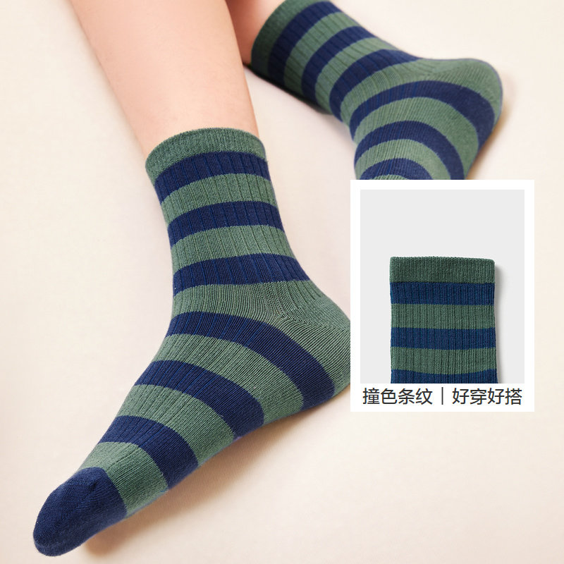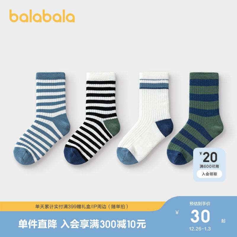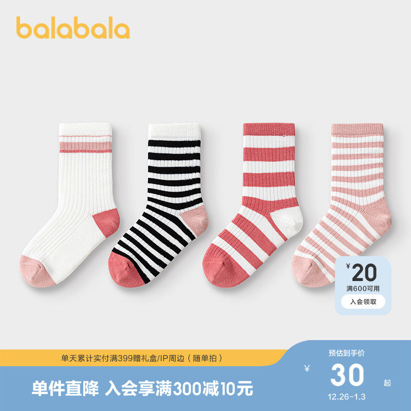巴拉巴拉儿童袜子棉春秋新款潮流条纹小中大童男女童中筒袜四双装