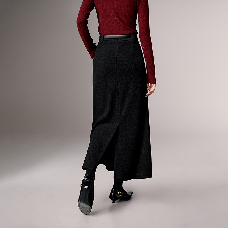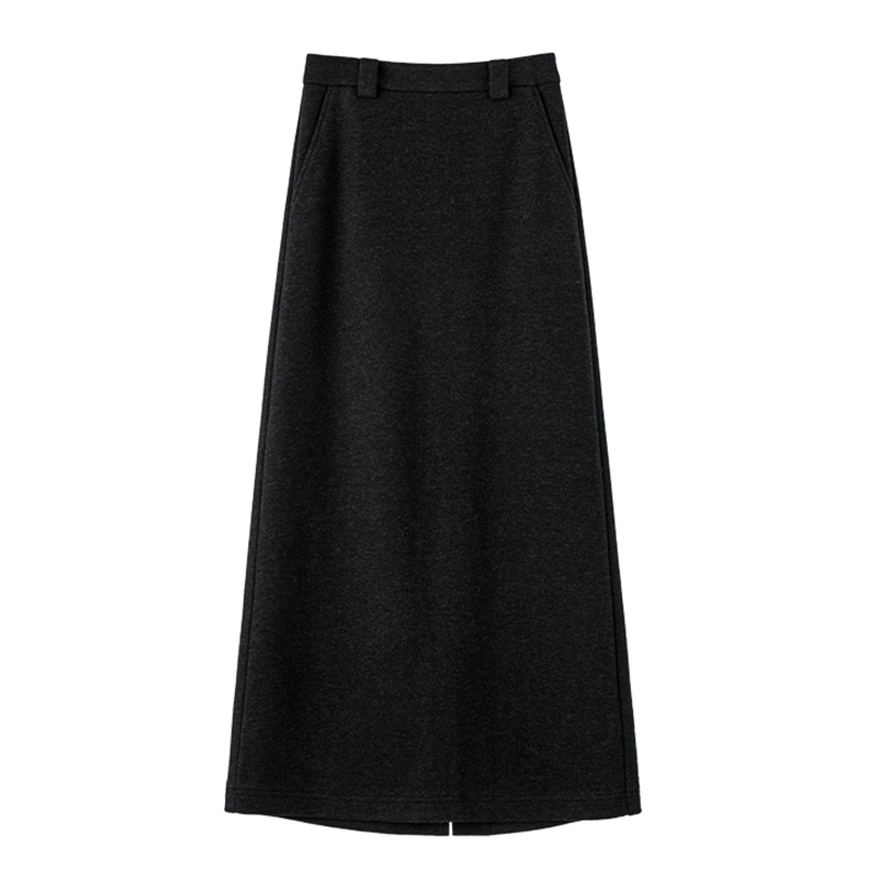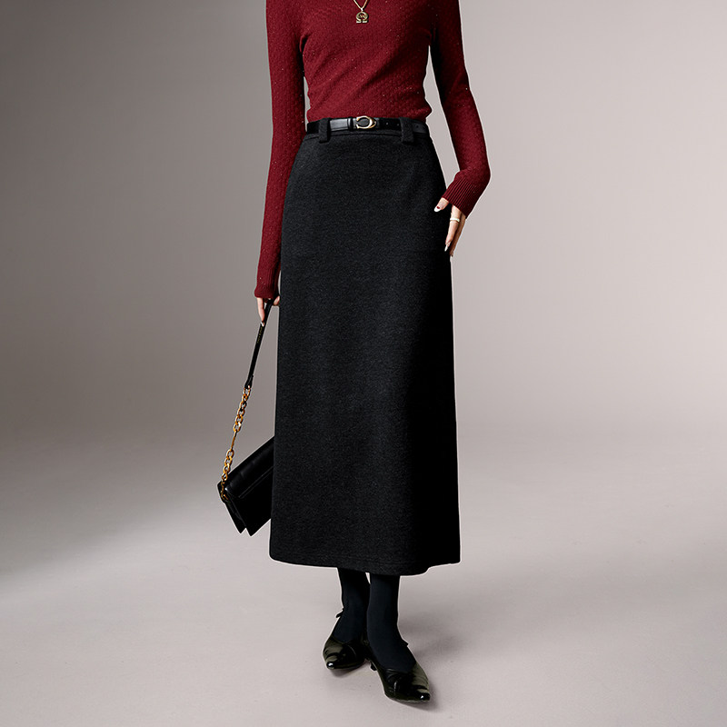 晚白2025年冬新款气质简约高腰毛呢裙修身显瘦优雅知性直筒长裙