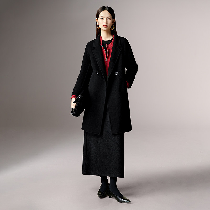 高腰版型,毛呢面料,有弹力,口袋设计