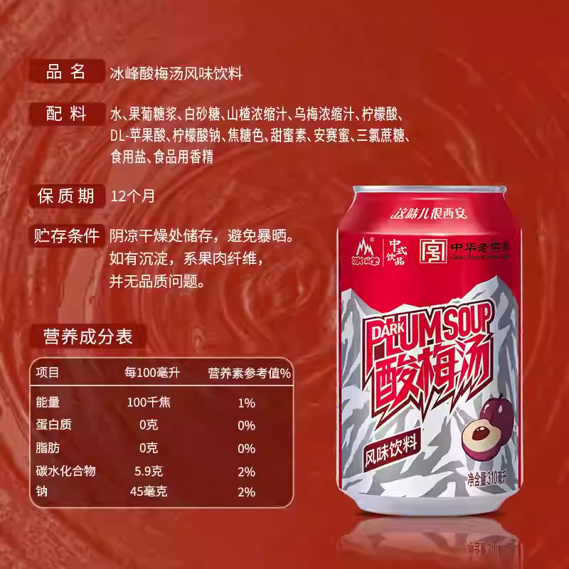 冰峰 罐装饮料 酸梅汤 310ml*24 酸梅汤