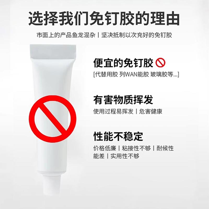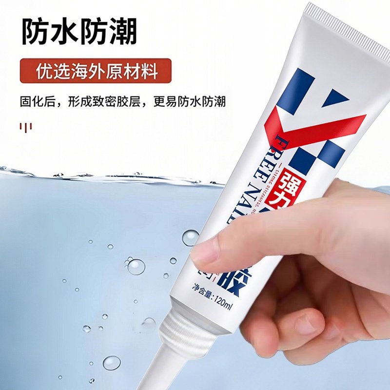 强力高粘免钉胶高粘度粘墙面金属镜子瓷砖踢脚线卫生间置物架贴墙专用防水家用胶粘得牢免打孔胶水固定浴室