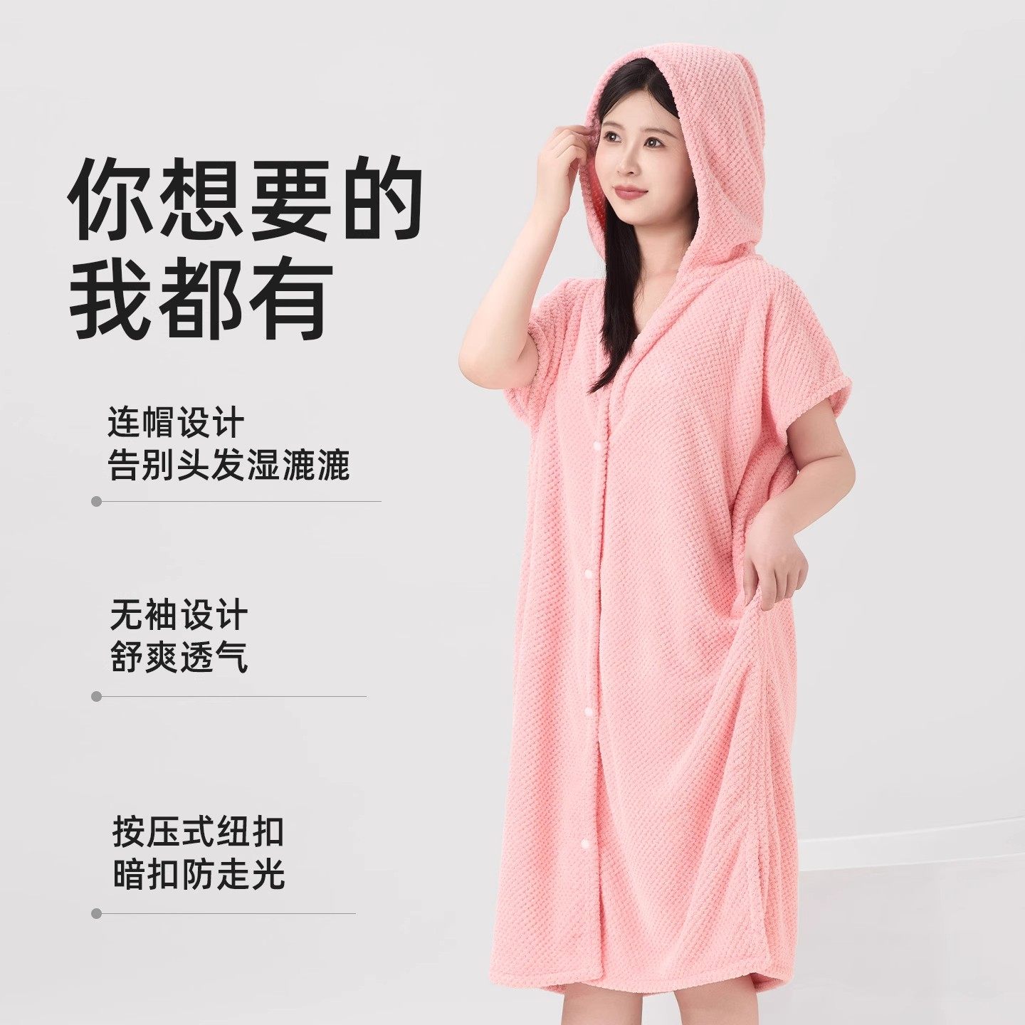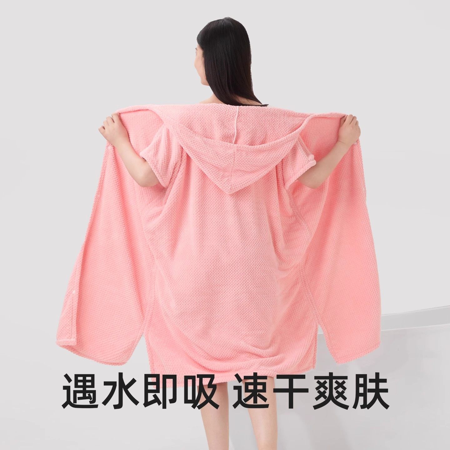 三利可穿式浴巾浴袍速干女家用厚连帽非纯棉浴裙浴衣2025新款裹巾