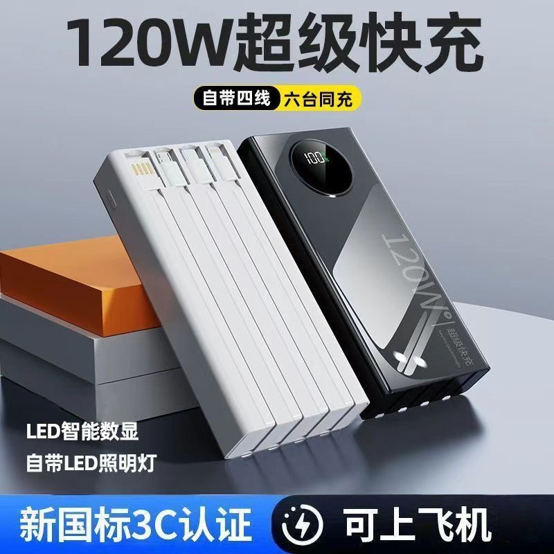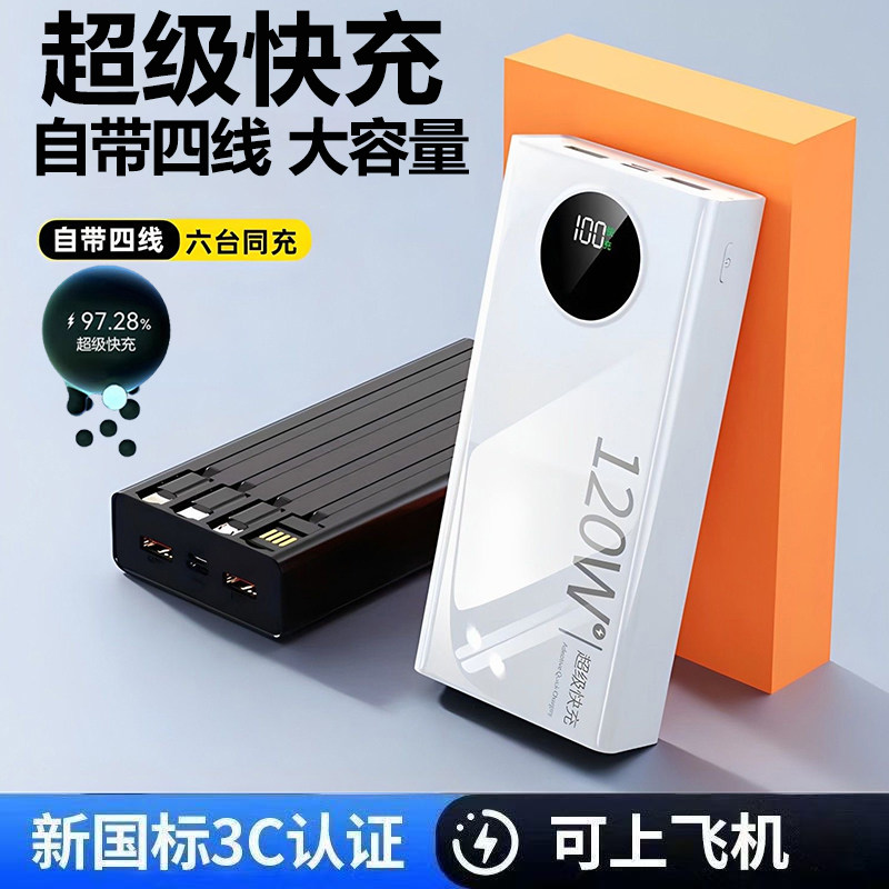 【新国标3C认证】官方正品旗舰店2025新款大容量超级快充电宝20000毫安自带线57000适用苹果专用5万移动电源