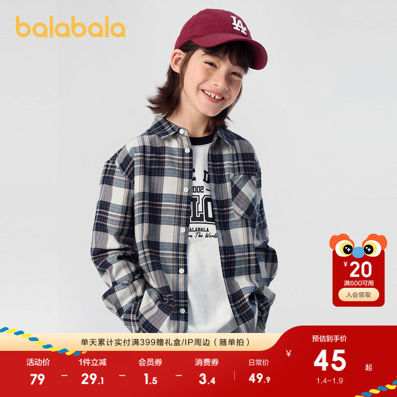 巴拉巴拉童装儿童衬衫秋装2025男童女童长袖衬衣亲子装休闲时尚潮
