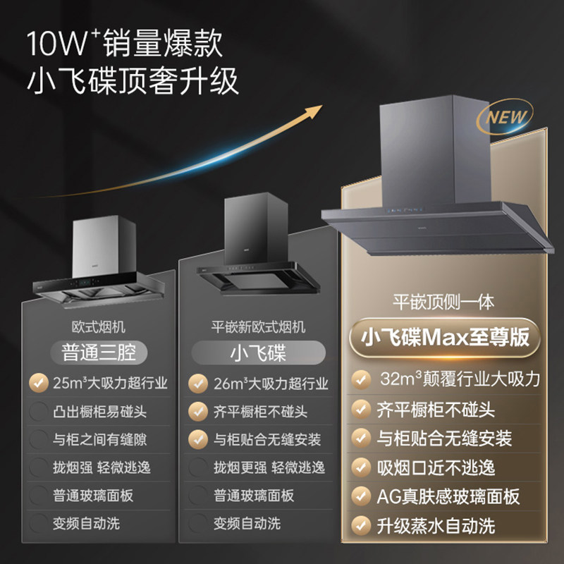 小飞碟Max华帝油烟机S66/S66P变频抽油烟机家用厨房自动洗旗舰店