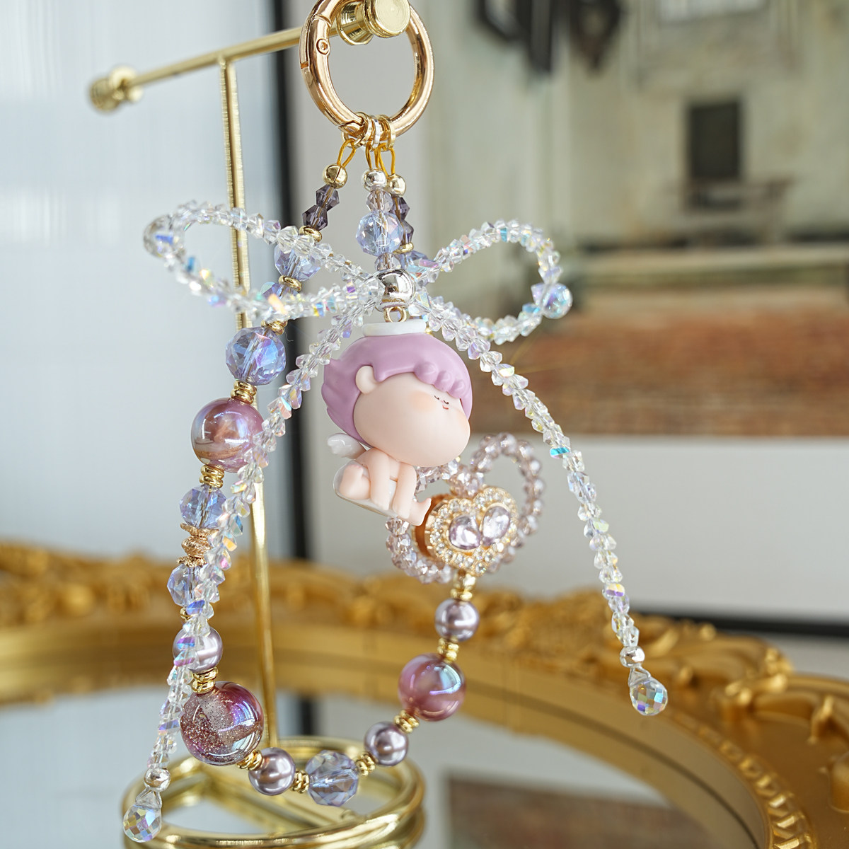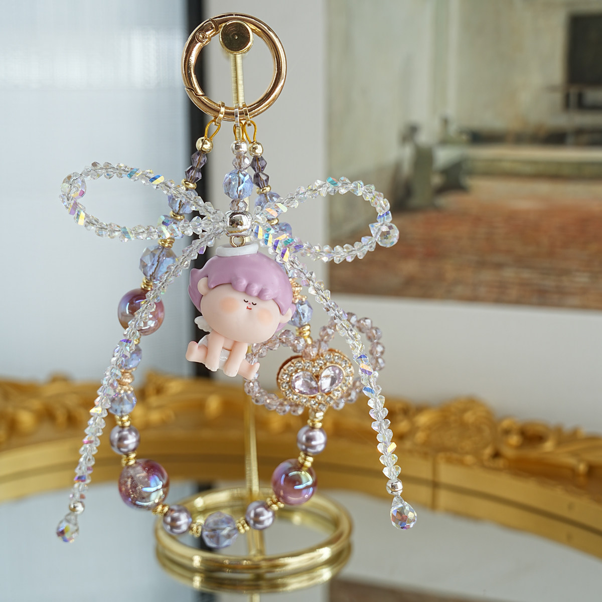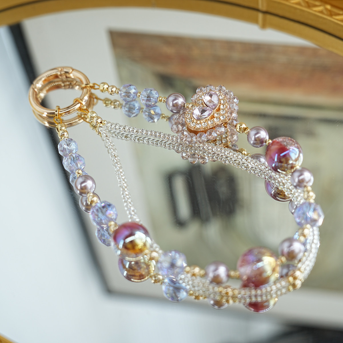 水晶紫水晶合金锆石精致招财运祈福钢绳手机挂链车钥匙扣链